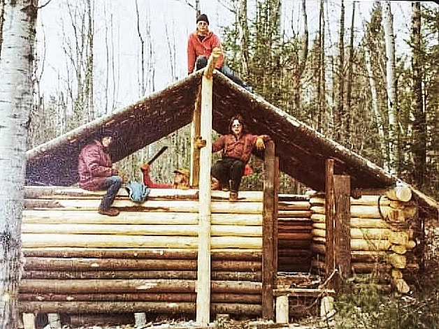 I’m also reminded of the log cabin my friends and I built back in the high school days, mostly for a place to drink. It turned out to be a stunning structure, with over one hundred logs, cedar bunk beds, a cellar, and even an ornate church door with a round, porthole window. (That’s me with the machete–boys will be boys!)