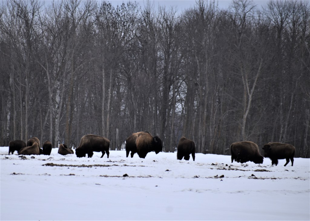 Further up the road, I was sure surprised to find a herd of buffalo. I’ve driven past here before, but I assumed those were cattle out in the field, and never took a closer look.