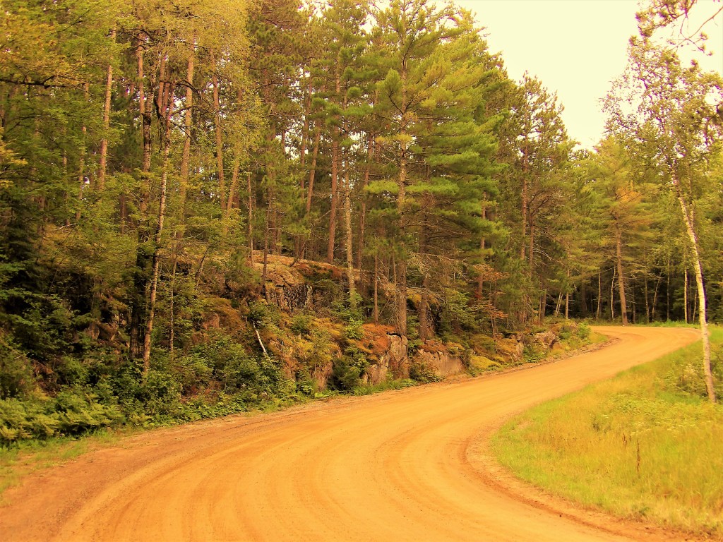 We’re north of Ely, MN this cloudy morning, and just entering the BWCA (Boundary Waters Canoe Area) on this old dirt road called the Echo Trail. It winds through the boreal forest for 50 miles or so, a trail cut out between massive jutting rocks and endless little lakes. Our destination is Voyageurs National Park on the Canadian Border.