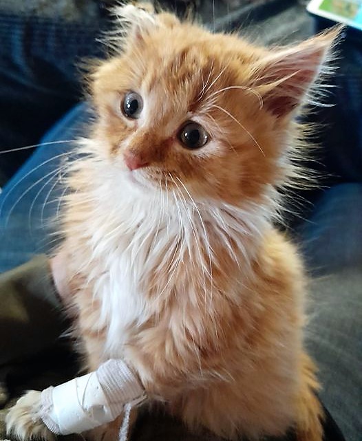 This one has something wrong with her front leg; it swings around like it’s broken, but she doesn’t seem to be in any pain. It might be a birth defect. We wrapped it up to help her walk easier.