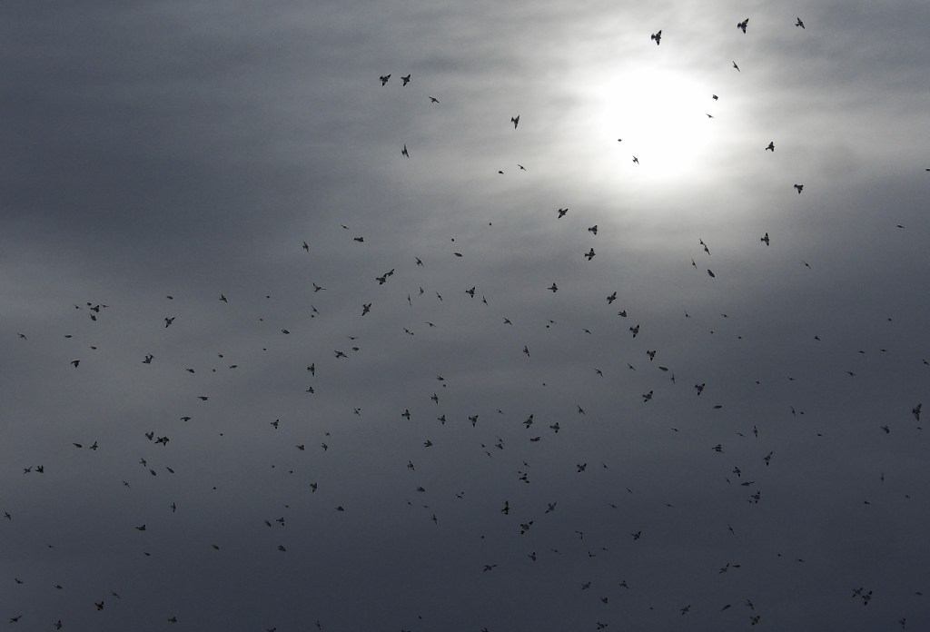Many birds fly in some kind of formation, often wingtip to wingtip like the Blue Angels, but these little snow birds are all over the place. From here, it looks like total chaos, but nothing could be further from the truth.