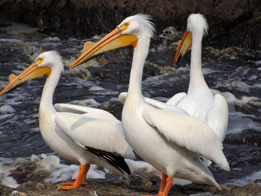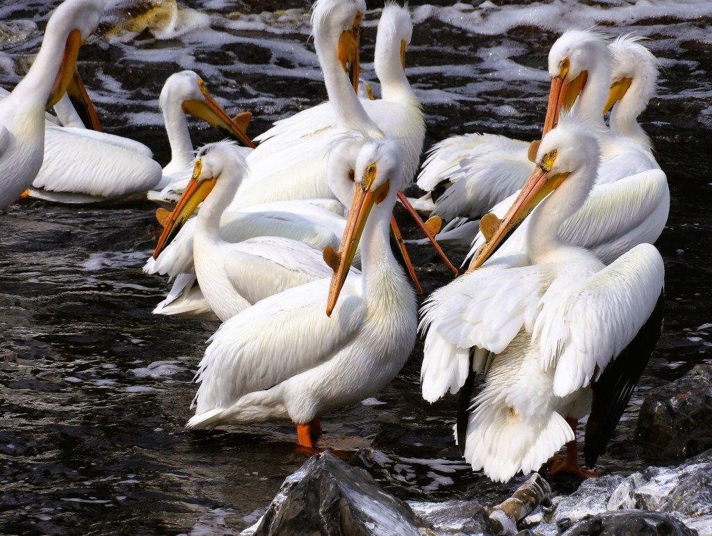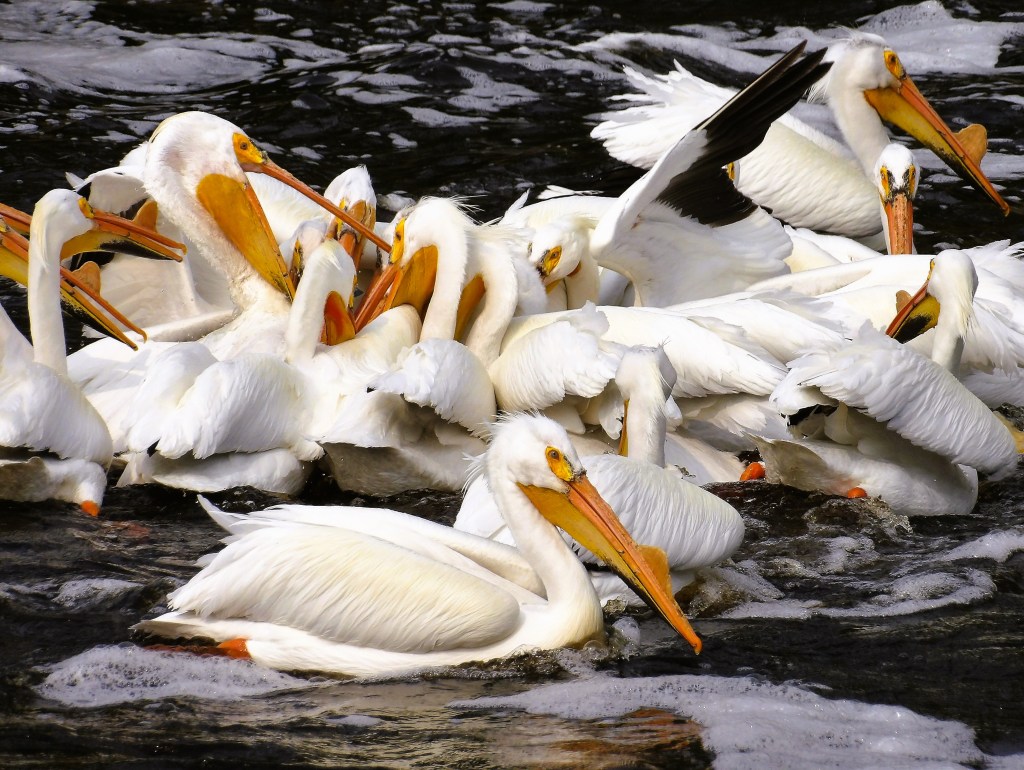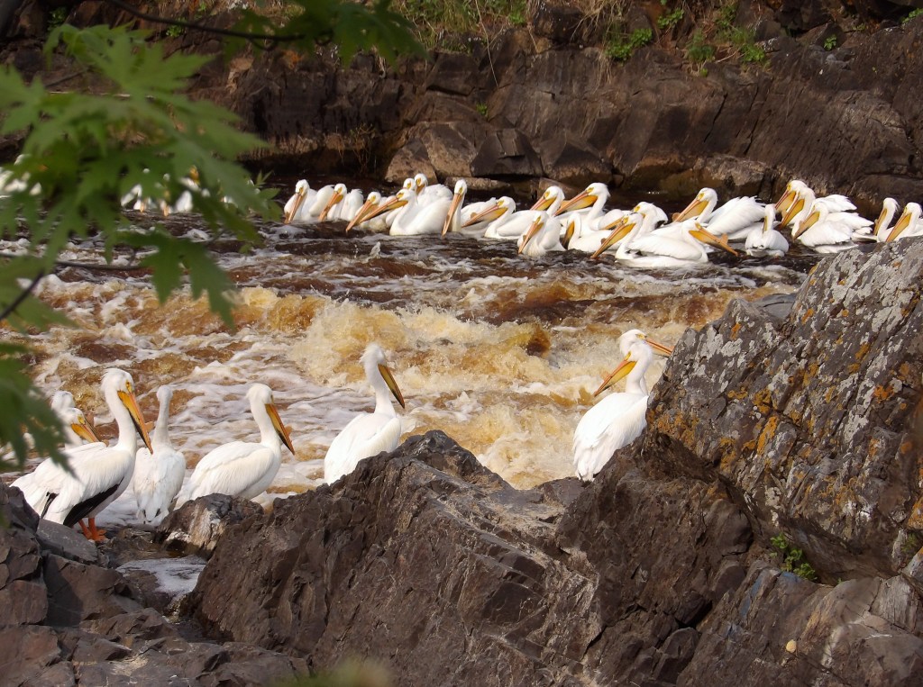 I went back to Rapid River to get more shots of the photogenic pelicans. Here’s what I got: