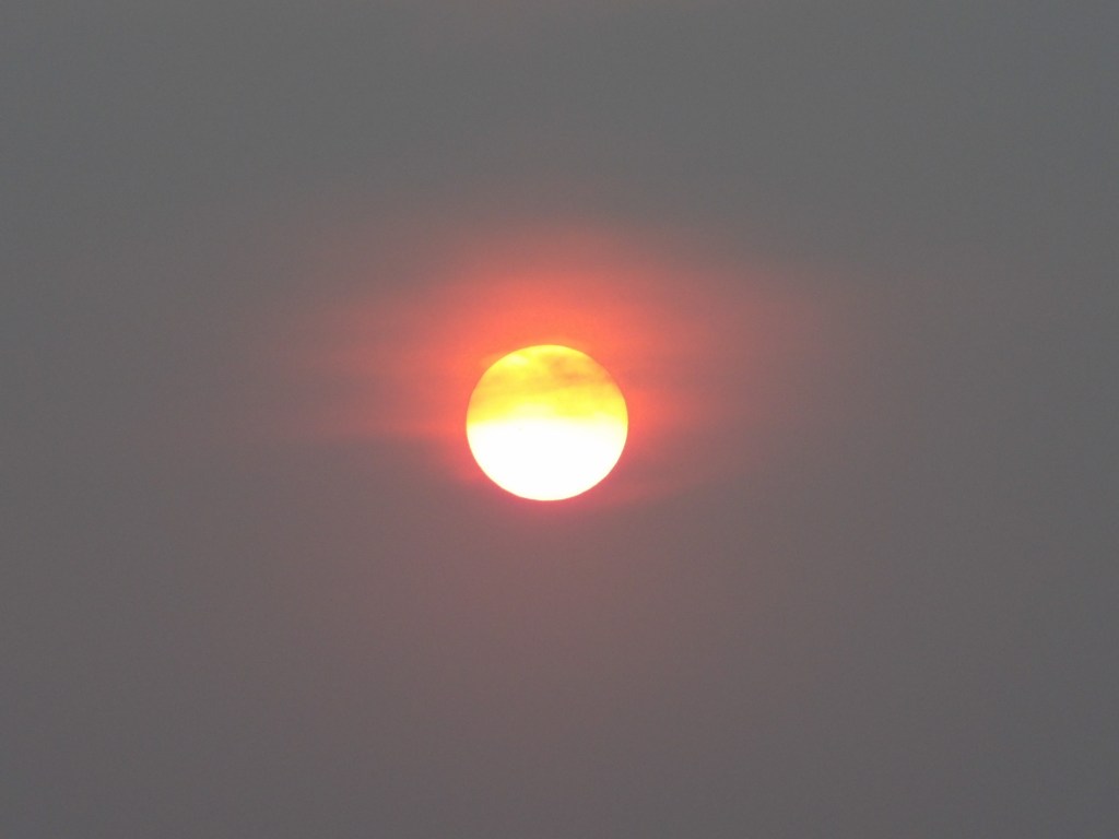 The sun comes up pink, and then turns a color I can only describe as cream soda for the rest of the day. It’s a strange, almost eerie sky: there are no clouds and the sun is right there, but I don’t think any boys will be toasting ants with magnifying glasses in the near future.