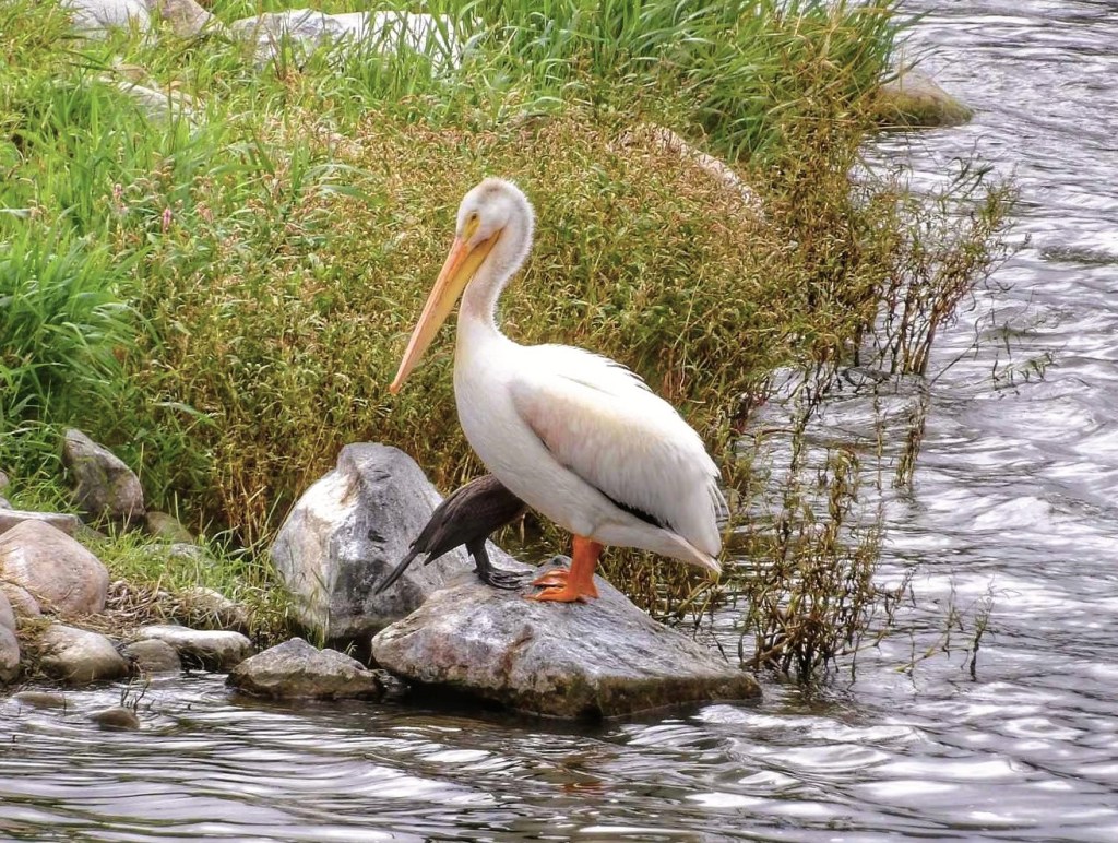 I went down to the river yesterday and had to laugh at a little black cormorant who was trying to take over an old pelican’s favorite perching rock. The pelican wasn’t giving an inch, and could have brushed the smaller bird into the water with one swipe of his sword-like beak, but he was a wise old bird and just stood there, biding his time. This went on for quite a while, but the cormorants coal black feathers eventually got too hot in the scorching sun, and he had to take to the water, which proves, once again, that patience is a virtue.