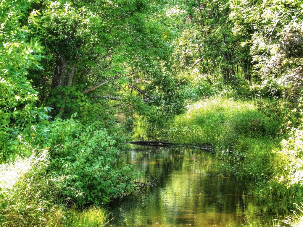 The sun-bleached fields are in stark contrast to the lush, verdant banks of the creeks that wind through the dry countryside like Oases in the desert.