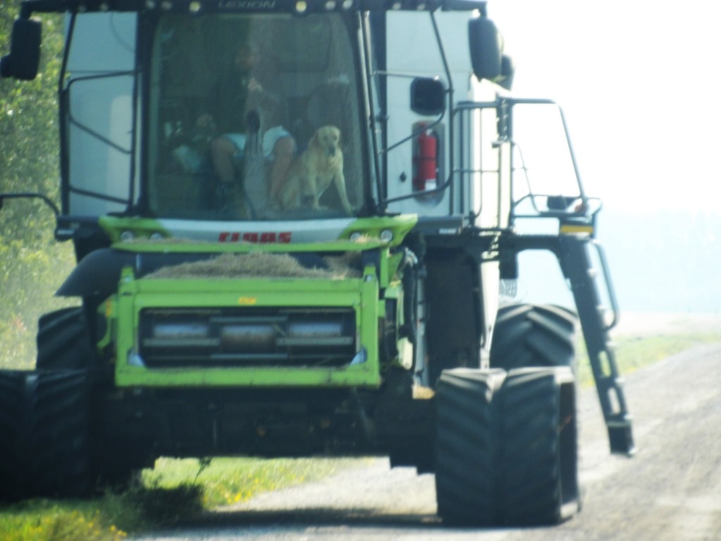 There’s always some new-fangled farm equipment on the roads now, it’s that time of the year. And it’s all high-tec; what used to take a whole family of sons to accomplish on the farm can now be done by one man and his dog. Apparently.