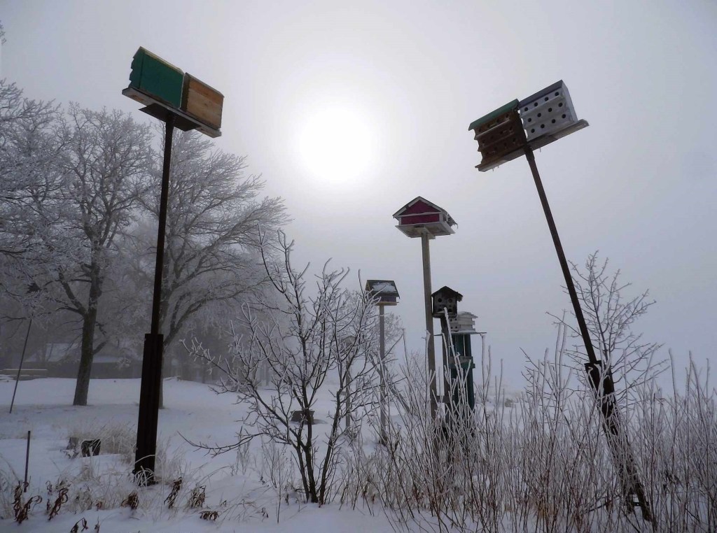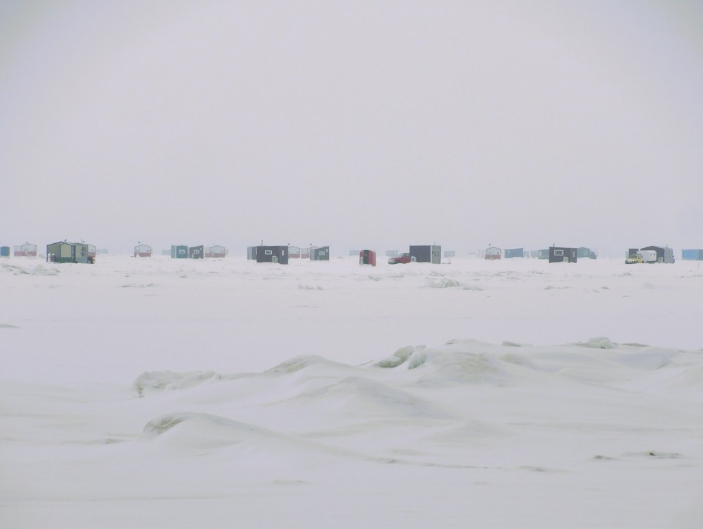 It is impossible to get a good picture of the city on the lake. If I zoom in, I can only see a small section of all the icehouses clearly; if I zoom out, they tend to disappear in the haze before I can get them all in. It’s somewhat like the Heisenberg Uncertainty Principle: you can have one or the other, but not both. Unless you have a drone, that is, and I don’t.