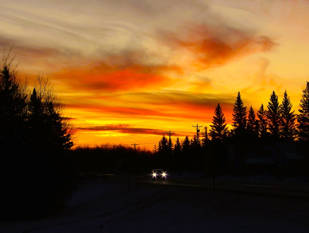 About a mile further we came upon a vehicle rolled over in the ditch. Fortunately, its occupants had already been rescued, but that was it–strike three! Okay, Universe, I get the hint.