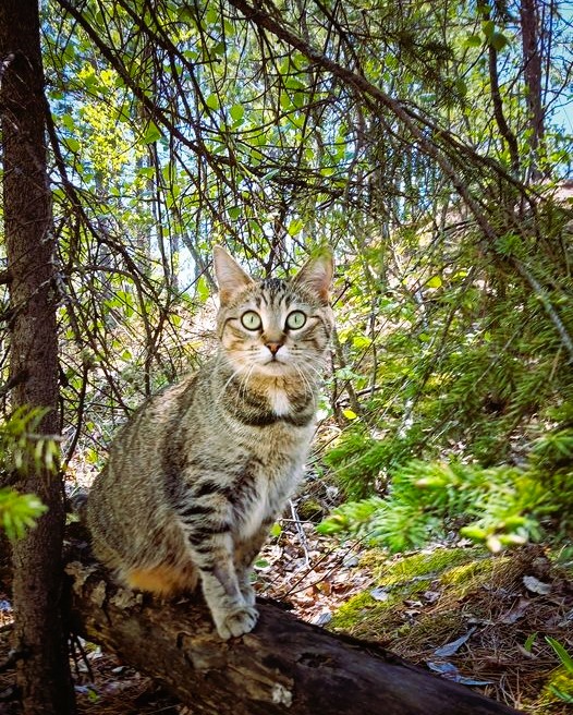 We took Freya out to the woods surrounding our new place, thinking that she’d really enjoy it; the only outings she’d had before this were on a dirt road between two farmer’s fields. In fact, I was worried she’d like it too much and run off or climb a tree. Aaron set her down on a log, and with all the trees rustling overhead in the wind, she just froze in place. It was just too overwhelming for her, so we took her home. Next time, we’ll look for a more open setting.