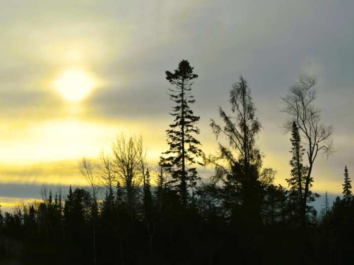 by tall trees