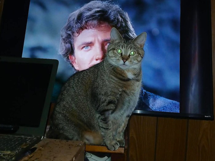 And her green eyes say, “No! Look at me!”