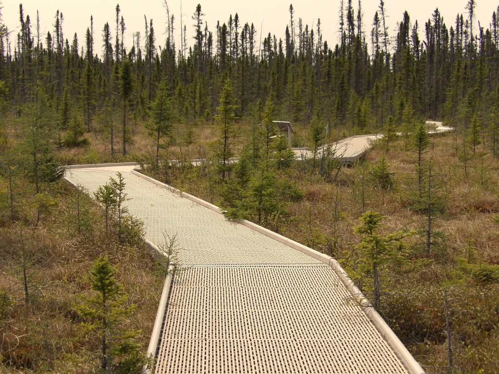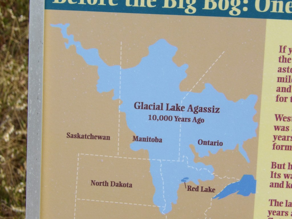There’s benches (fortunately) and signs along the walkway. This one shows how 10,000 years ago, Lake Superior was dwarfed in size next to Lake Agassis, which covered a large part of Canada and Minnesota. The bog itself is situated between Red Lake and the Canadian Border.