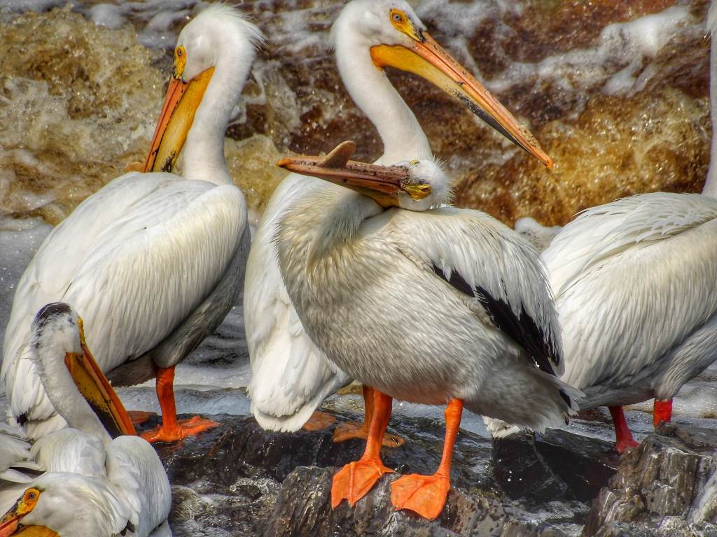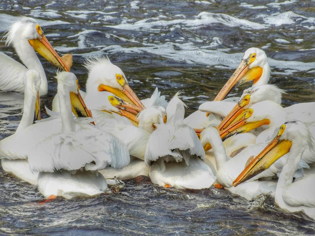 I went back to Rapid River to get more shots of the photogenic pelicans. Here’s what I got: