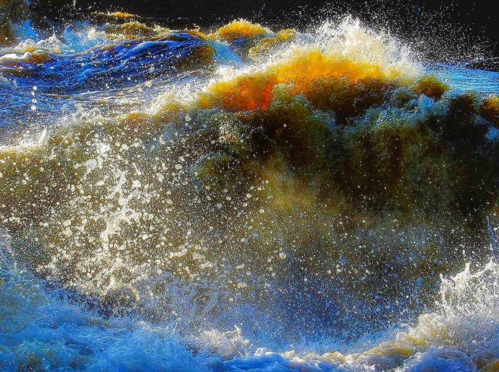 A giant wave explodes on the rocks. It’s hard to believe, but the river will be reduced to but a trickle in a month or two. It’s nature’s way.
