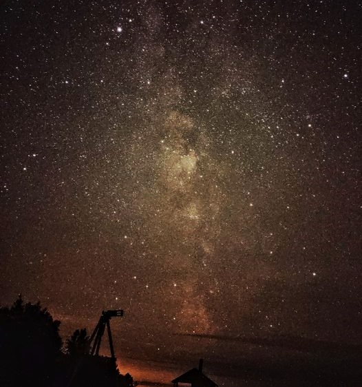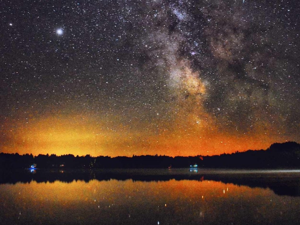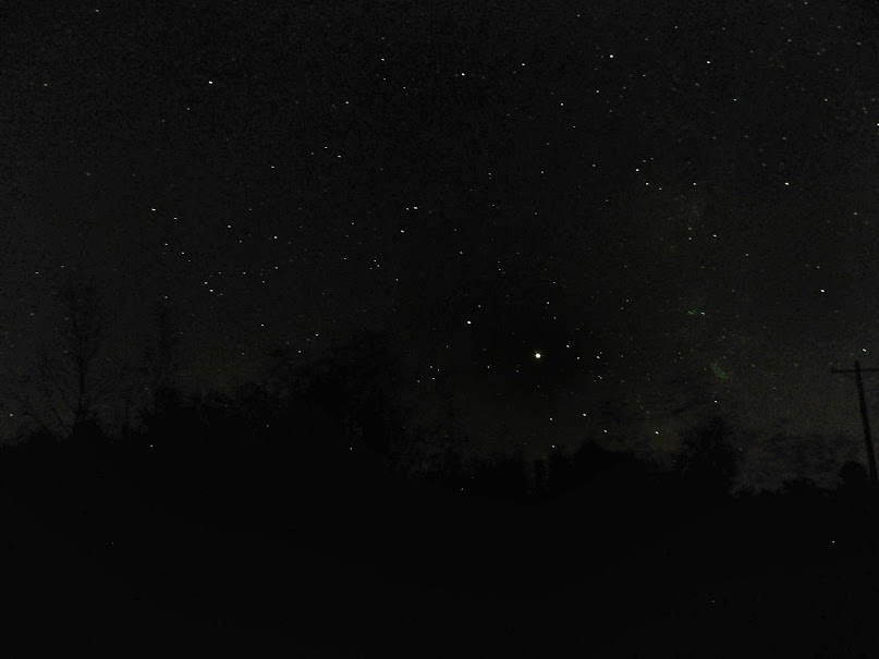 Overhead, the starry night sky