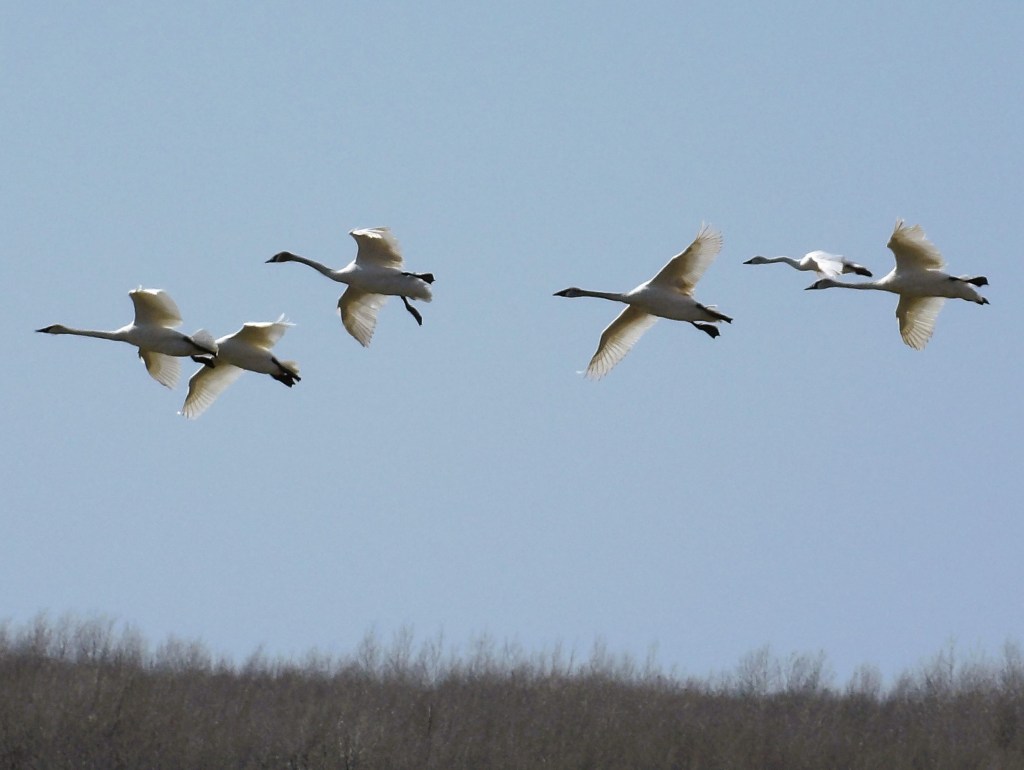 Heaviest of the native North American birds, trumpeter swans arrive at their nesting grounds after a long flight, and circle the big pond once or twice before splashing down. Then, they’ll typically do a little socializing and a whole lot of preening. Finally, it’ll be time to get down to the business at hand, and if all goes well, there will soon be a string of fuzzy little cygnets trailing mama like the tail of a kite.
